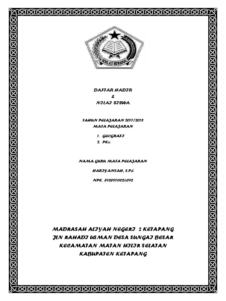 Contoh Cover Absensi Siswa Pigura from 0.academia-photos.com Anandi harini mata pelajaran : Are you making these common resume mistakes? Top resume builder, build a perfect resume with ease. Top resume builder, build a perfect resume with ease. Sk panitia ulangan semester genap 2018. Buku absen dan daftar nilai siswa sekolahrp2.500: Universal silakan sesuaikan harinya dan tanggal merahnya. Jun 08, 2021 · melakukan inventarisasi siswa, membagi kelompok sesuai dengan kebijakan atau hasil rapat para ustadz.